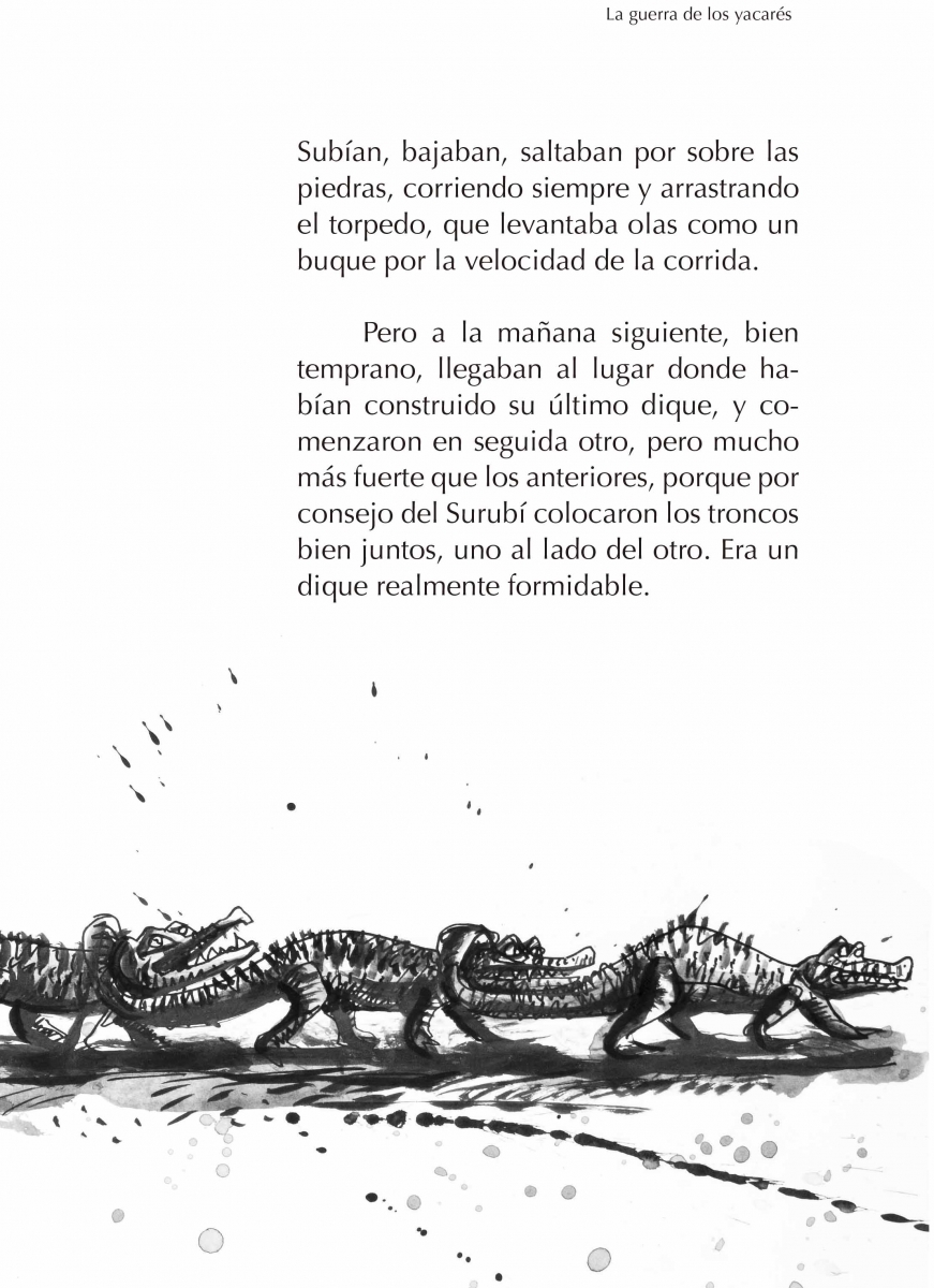 En cuanto al proceso de creación de ambos trabajos, el artista señala que contó con total libertad a la hora de interactuar con los textos, más allá de cualquier regla o parámetro previamente establecido: “el trabajo fue totalmente libre, claro que hay límites técnicos y posteriormente la visión del editor”.En ese sentido, para Javier el trabajo con Planeta Sostenible en el desarrollo de ambos libros lo llevó a entender el carácter colectivo que implica la edición de un libro ilustrado: “he aprendido que no es llegar y dibujar, hay que leer con atención varias veces, sentir el ritmo de la narración, dibujar los momentos que más me llaman la atención y presentárselos al editor, éste a su vez piensa cómo se arma el libro, página a página, y decide dónde deben estar la ilustraciones, donde también hay un ritmo, una composición, ¡un arte!. Después de que esta todo afinado, pasa por las manos del diseñador, que también tiene mucho que decir y hacer, y por último el impresor, porque imprimir también es un arte. En fin, un libro ilustrado es una obra colectiva”, finaliza.